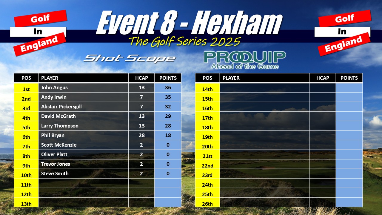 Congratulations to John Angus, winning our Hexham event with 36 stableford points.
