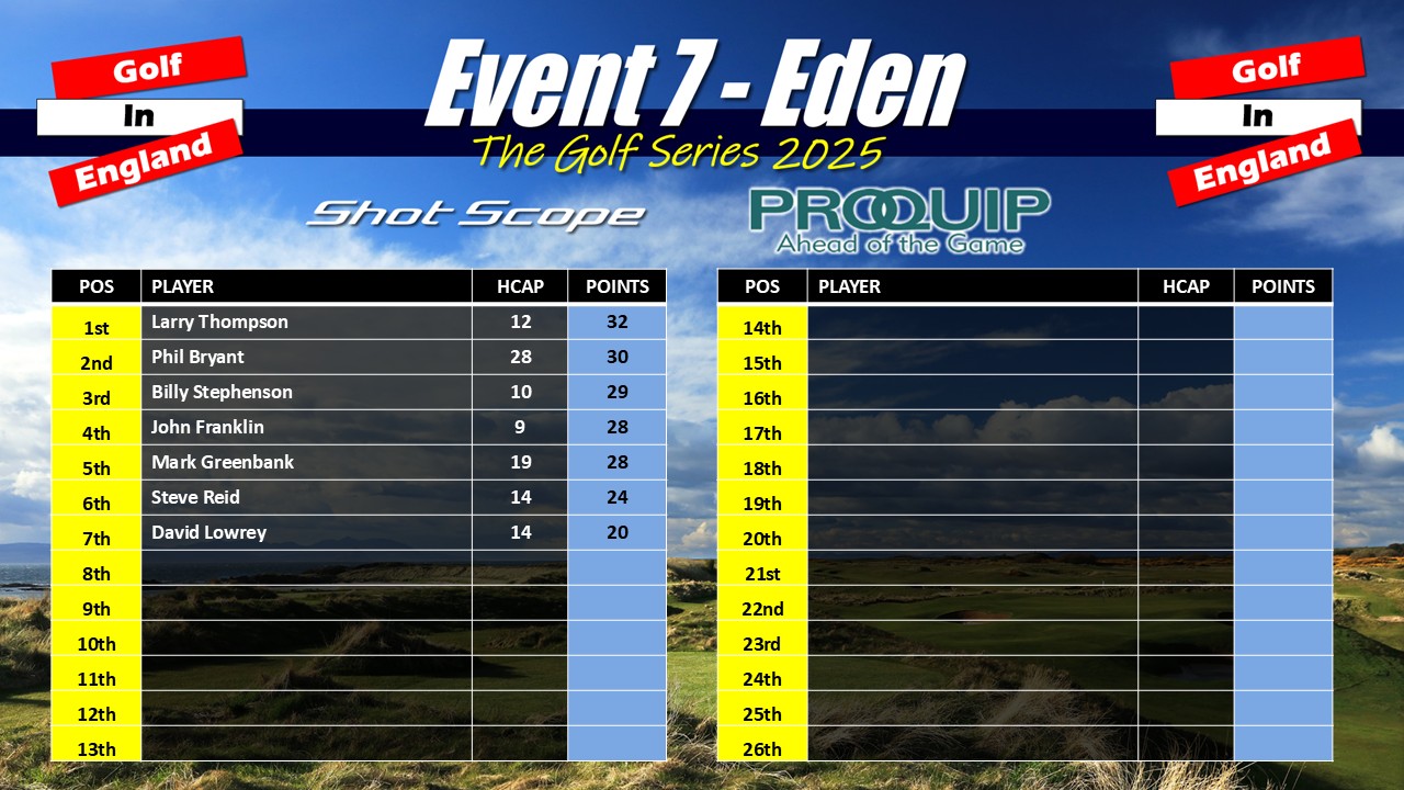 Congratulations to Larry Thomson, winning our Eden event with 32 stableford points.